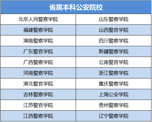 公安院校公安專業提前批次錄取學校有中國人民公安大學、中國人民警察大學、中國刑事警察學院、南京森林警察學院、鐵道警察學院、云南警官學院、江西警察學院、寧夏警官職業學院等。具體如下: